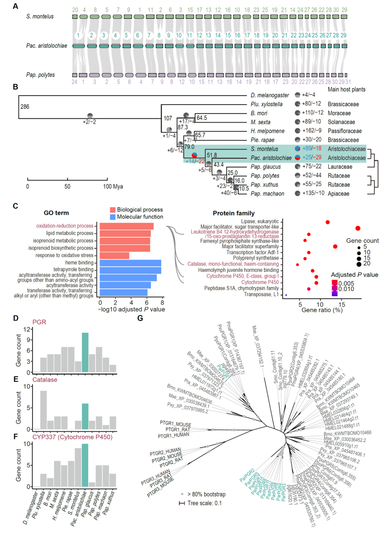图2. 凤蝶科蝴蝶比较基因组分析结果